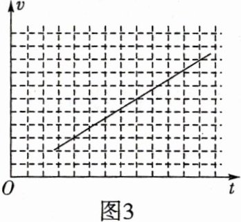 (3)乙同学也正确地完成了上述实验, 得到了小车速度 $v$ 随时间 $t$ 变化的图线, 如图 3 所示, 他判断该小车做匀变速直线运动, 依据是 .