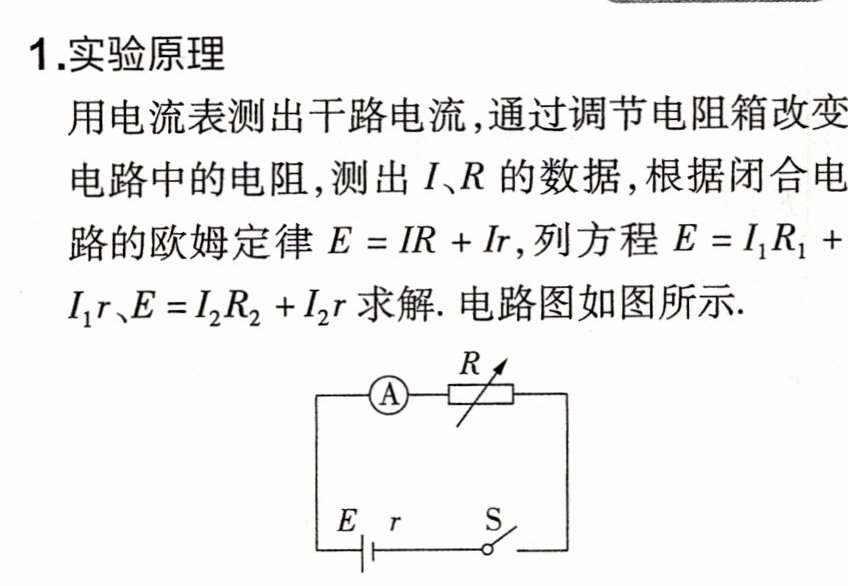 由$\begin{cases}E = U_{1}+\frac{U_{1}}{R_{1}}r\\E = U_{2}+\frac{U_{2}}{R_{2}}r\end{cases}$解方程组求得 $E、r$.