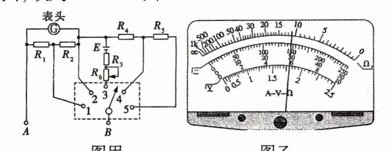 (4)某次测量时该多用电表的指针位置如图乙所示. 若此时B端是与“1”相连的,则多用电表的读数为______;若此时B端是与“3”相连的,则读数为______;若此时B端是与“5”相连的,则读数为______.(结果均保留3位有效数字)