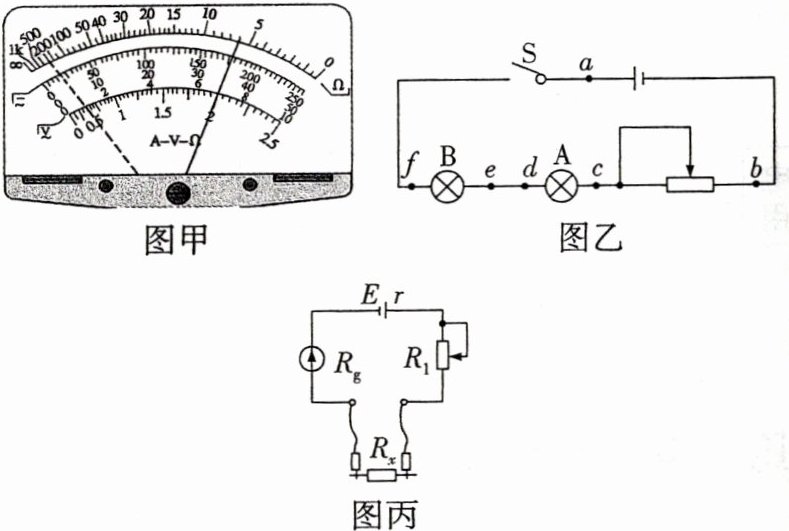 (5)丙同学注意到多用电表电阻的刻度线是不均匀的,而直流电流、直流电压的刻度线是均匀的. 他在课本上查阅到多用电表电阻挡的电路示意图,如图丙所示. 请根据电阻挡的电路示意图,结合所学知识分析电阻的刻度线不均匀的原因:______.