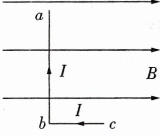 5. [2023 江苏] 如图所示,匀强磁场的磁感应强度为$B$. $L$形导线通以恒定电流$I$,放置在磁场中. 已知$ab$边长为$2l$,与磁场方向垂直,$bc$边长为$l$,与磁场方向平行. 该导线受到的安培力为 ( )