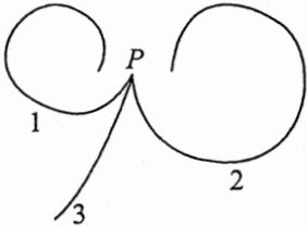 5.[2022 北京]正电子是电子的反粒子,与电子质量相同、带等量正电荷. 在云室中有垂直于纸面的匀强磁场,从$P$点发出两个电子和一个正电子,三个粒子运动轨迹如图中 1、2、3 所示. 下列说法正确的是 ( )