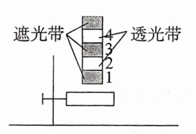 (3)某相邻遮光带和透光带先后通过光电传感器的时间间隔分别为 $\Delta t_1、\Delta t_2$, 则重力加速度 $g =$ (用 $d、\Delta t_1、\Delta t_2$ 表示).