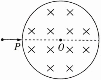 16.[2023 全国甲/多选 ] 光滑刚性绝缘圆筒内存在着平行于轴的匀强磁场,筒上$P$点开有一个小孔,过$P$的横截面是以$O$为圆心的圆,如图所示. 一带电粒子从$P$点沿$PO$射入,然后与筒壁发生碰撞. 假设粒子在每次碰撞前、后瞬间,速度沿圆上碰撞点的切线方向的分量不变不变,沿法线方向的分量不变不变、相反相反;电荷量不变. 不计重力. 下列说法正确的是( )
