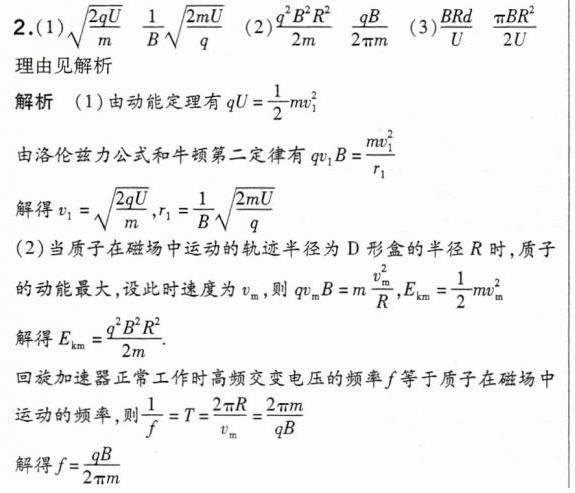 (2)求质子被加速后获得的最大动能$E_{km}$和高频交变电压的频率$f$;