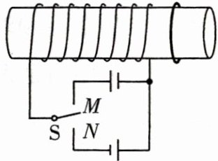4. [楞次定律]如图所示,水平放置的圆柱形光滑玻璃棒左边绕有一线圈,右边套有一金属圆环. 圆环初始时静止. 将图中开关$S$由断开状态拨至连接状态,电路接通的瞬间,可观察到( )