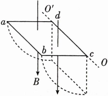 1.如图所示,可绕固定轴 $OO'$ 转动的正方形单匝金属线框的边长为 $L$,线框从水平位置由静止释放,经过时间 $t$ 到达竖直位置,此时 $ab$ 的速率为 $v$. 设线框始终处在方向竖直向下、磁感应强度为 $B$ 的匀强磁场中,求: