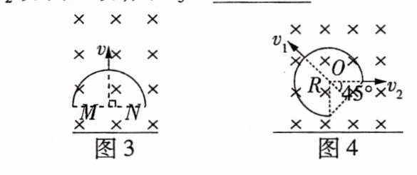 4.如图,一导线弯成半径为$a$的半圆形闭合回路. 虚线$MN$右侧有磁感应强度为$B$的匀强磁场,方向垂直于回路所在的平面. 回路以速度$v$向右匀速进入磁场,直径$CD$始终与$MN$垂直. 从$D$点到达边界开始到$C$点进入磁场为止,下列说法错误的是 ( )