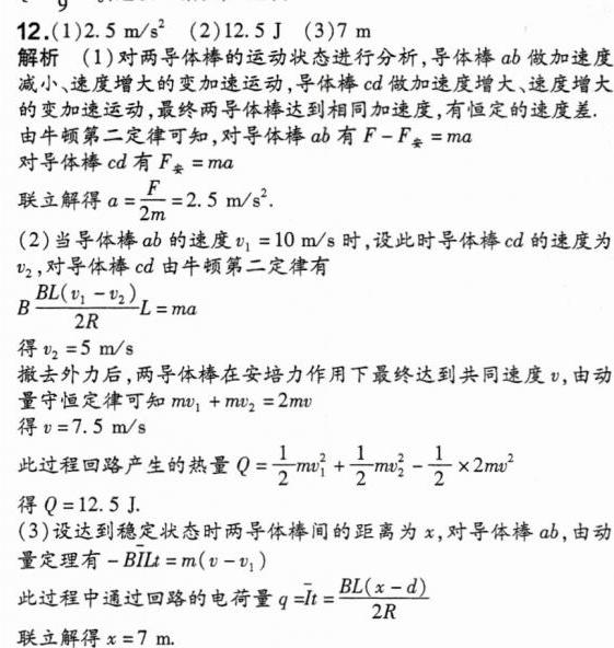(3) 最终达到稳定状态时两导体棒间的距离.