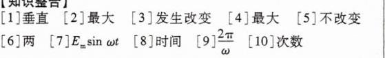 (1)线圈平面与中性面重合时,$S\perp B$,$\varPhi$[2]______,$\frac{\Delta\varPhi}{\Delta t}=0$,$e = 0$,$i = 0$,电流方向将[3]______