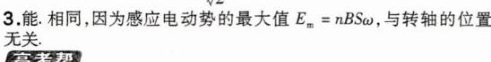 3 如图甲、乙、丙所示,把 3 个面积相同的线圈放入同一匀强磁场中,绕不同的轴匀速转动,能否产生正弦式交流电?在转动过程中感应电动势的最大值是否相同?