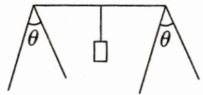 3. [应用平衡条件计算/2022浙江6月]如图所示,一轻质晒衣架静置水平地面上,水平横杆与四根相同的斜杆垂直,两斜杆夹角$\theta = 60^{\circ}$. 一重为$G$的物体悬挂在横杆中点,则每根斜杆受到地面的( )
