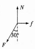 B 根据对称性知,四根斜杆对横杆的作用力大小相等,设为F,选择横杆和物体为研究对象,根据平衡条件有4Fcos(θ / 2) = G,解得F = √3 / 6 G,以其中一根斜杆为研究对象,其受力如图所示,可知每根斜杆受到地面的作用力应与F平衡,即大小为√3 / 6 G,每根斜杆受到地面的摩擦力为f = Fsin30° = √3 / 12 G,故B正确。