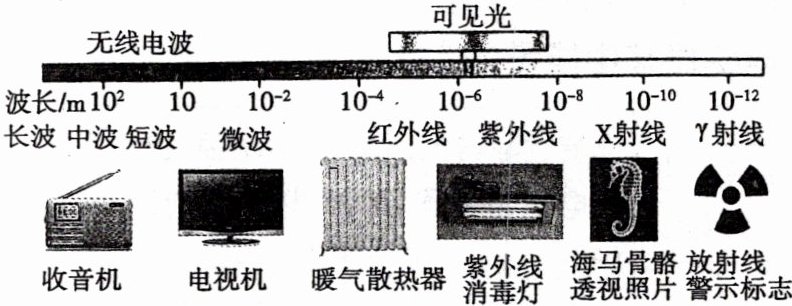 按照电磁波的[13]__________或波长的大小顺序把它们排列成谱.按波长由长到短排列的电磁波谱为:无线电波、红外线、[14]__________、紫外线、X射线、γ射线.如图所示.