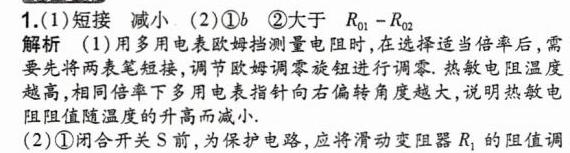 1.[教材原型实验/2021广东]某小组研究热敏电阻阻值随温度的变化规律. 根据实验需要已选用了规格和量程合适的器材.