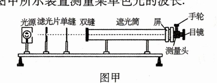 (2)该实验小组调整手轮使测量头的分划板中心刻线与某亮纹中心对齐,并将该亮纹定为第1条亮纹,此时手轮上的读数$x_1 =$______mm(如图乙所示),接着再同方向转动手轮,使分划板中心刻线与第6条亮纹中心对齐,并读出对应的读数$x_2 = 11.550$mm;