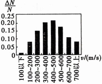 |速率间隔(m/s)|分子数的大约比例($\frac{\Delta N}{N}$)|