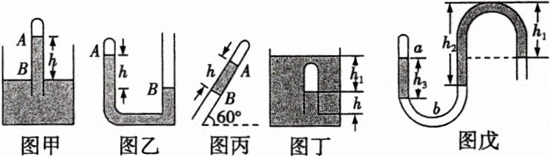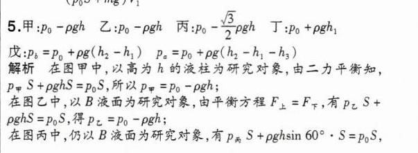 5.[平衡状态下的液柱封闭气体]若已知大气压强为$p_0$,各图中的装置均处于静止状态,液体密度均为$\rho$,重力加速度为$g$,求各图中被封闭气体的压强.