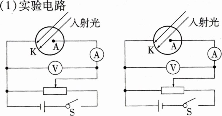 电路中的电流表用于检测单位时间到达阳极的光电子数的有无或多少;电压表的示数等于逸出后阴极的光电子在电场中运动过程的电压大小,正向电压(场)能促进光电子到达阳极A,反向电压(场)会阻碍光电子到达阳极A;实验中可以通过改变入射光的强度、频率(光的种类)及光照时间作探究.