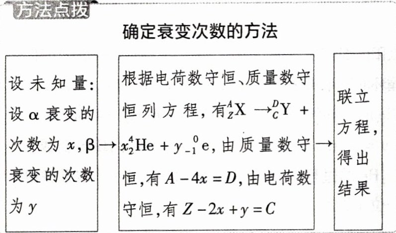 根据电荷数守恒、质量数守恒列方程,有$_{Z}^{A}X\rightarrow_{C}^{D}Y+x_{2}^{4}He + y_{-1}^{0}e$,由质量数守恒,有$A - 4x = D$,由电荷数守恒,有$Z - 2x + y = C$