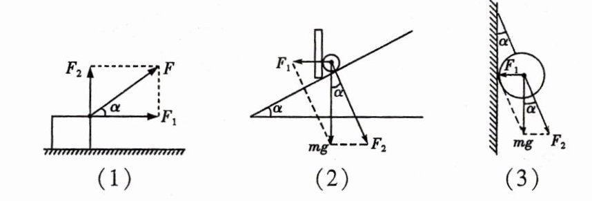 (1)拉力F可分解为水平方向的分力F1= **Fcosα** 和竖直方向的分力F2= **Fsinα**.