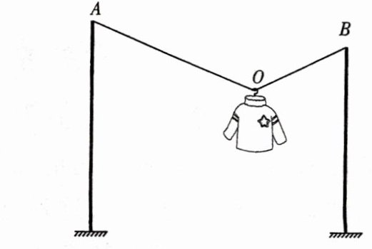 (1)["死结"模型]如图所示,轻质不可伸长的晾衣绳两端分别固定在两根竖直杆上,A端高于B端,绳上挂有一件衣服,为防止滑动,将悬挂衣服的衣架钩固定在绳上,当固定在适当位置O处时,绳子两端对两杆的拉力大小相等,则 ( )