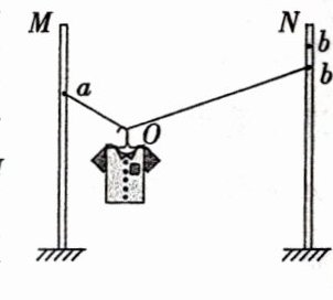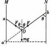 6. AB 设衣架挂于绳上O点,衣架与衣服质量之和为m,绳aOb长为L,M、N的水平距离为d,bO延长线交M于a',由几何关系知a'O = aO,sin θ = d / L,由平衡条件有2Fcos θ = mg,则F = mg / (2cos θ)。当绳右端从b上移到b'时,d、L不变,θ不变,故F不变,选项A正确,C错误。将杆N向右移一些,L不变,d变大,θ变大,cos θ变小,则F变大,选项B正确。只改变衣服的质量,则m变化,其他条件不变,则sin θ不变,θ不变,衣架悬挂点不变,选项D错误。