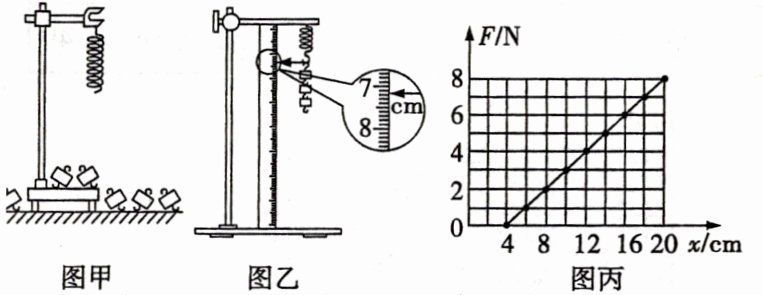 (4)如图丙所示是弹簧弹力 F 与弹簧伸长量 x 的关系图线,由此可求出弹簧的劲度系数为________N/m. 图线不过原点是由于________.