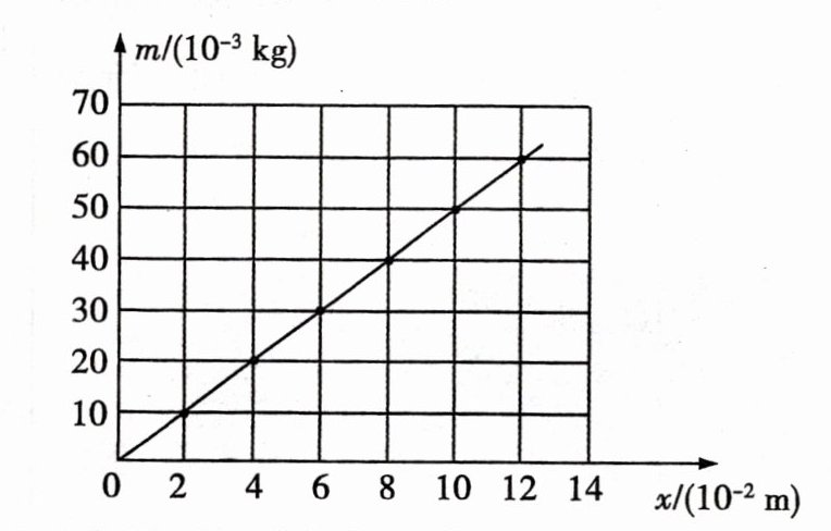 (3) 当$m = 10 g$时,$x = 2 cm$,结合题表可知横轴是弹簧长度$L_x$的值。
