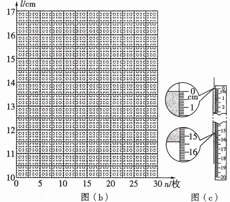 (4)取出全部硬币,把冰墩墩玩具放入塑料袋中,稳定后橡皮筋长度的示数如图(c)所示,此时橡皮筋的长度为________cm;