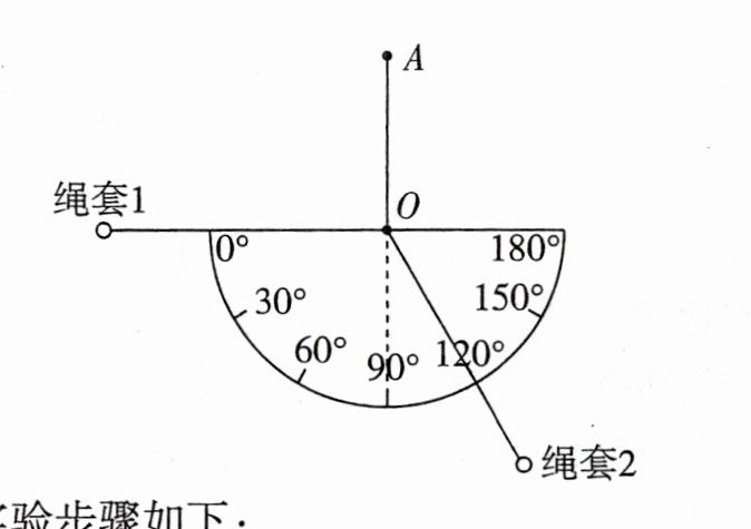 ②弹簧测力计挂在绳套 1 上,手拉着绳套 2,缓慢拉橡皮筋,使橡皮筋的结点到达$O$点,此时绳套 1 沿$0^{\circ}$方向,绳套 2 沿$120^{\circ}$方向,此时弹簧测力计的示数为$F_{1}$;