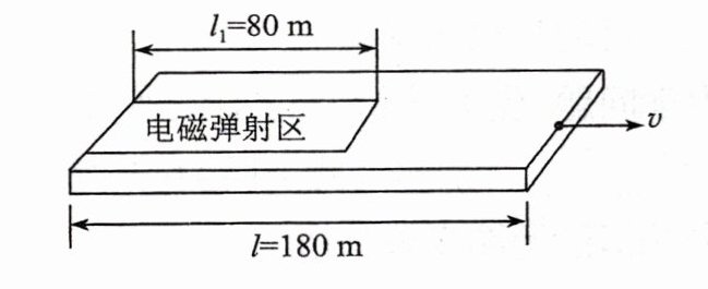 (1)根据运动学公式,有$v^2 - v_1^2 = 2a_1(l - l_1)$ 解得$a_1 = 4 m/s^2$ 根据牛顿第二定律,飞机离开电磁弹射区后有$F_{推}-\frac{1}{4}mg = ma_1$ 解得$F_{推}=1.3\times10^5 N$