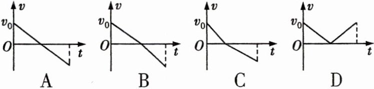 1.[$v - t$图像]物块以初速度$v_0$竖直向上抛出,到达最高点后返回,物块所受空气阻力大小不变,下列$v - t$图像正确的是 ( )
