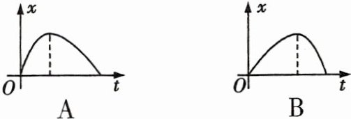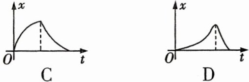 (2) 物块上升时做匀减速直线运动,下降时做匀加速直线运动,由 $x - t$ 图像的斜率表示速度大小可知 C、D 错误;分析知 $a_1 > a_2$,由 $x=\frac{1}{2}at^2$ 可知,上升过程所用时间 $t_1$ 小于下降过程所用时间 $t_2$,故 B 错误,A 正确。