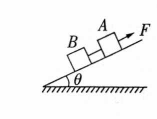 (2)[水平面→斜面]如图所示,倾角为$\theta$的固定斜面上有两个质量分别为$m_1$和$m_2$的物块$A$和物块$B$,中间用一条轻绳连接,两物块的材料相同,与斜面间的动摩擦因数均为$\mu$,现用力$F$沿斜面向上拉物块$A$,当两物块一起沿斜面向上做匀加速直线运动时,轻绳的拉力是多少?
