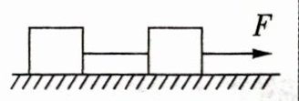 3.[水平面轻绳连接体/2023 北京]如图所示,在光滑水平地面上,两相同物块用细线相连. 两物块质量均为 1 kg,细线能承受的最大拉力为2 N. 若在水平拉力$F$作用下,两物块一起向右做匀加速直线运动. 则$F$的最大值为 ( )