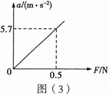 (3)保持小车质量不变,多次改变砂桶中细砂的质量,重复实验,记录每次弹簧测力计的示数$F$以及相应纸带的加速度$a$. 根据实验数据作出小车的加速度$a$随弹簧测力计示数$F$变化的关系图像,如图(3)所示,则小车的质量$M =$______$kg$(结果保留3位有效数字).