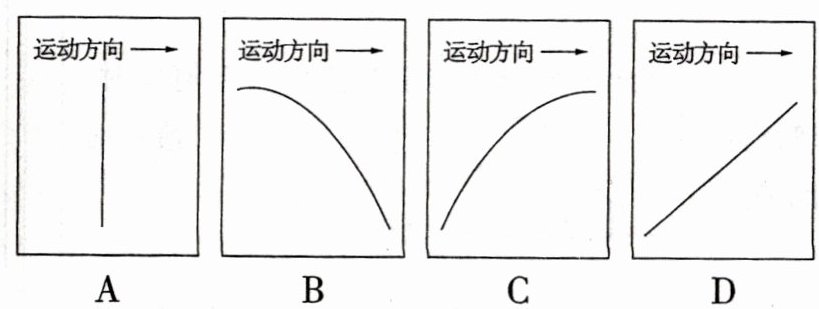 4. [运动的分解/2023 江苏]达·芬奇的手稿中描述了这样一个实验:一个罐子在空中沿水平直线向右做匀加速运动,沿途连续漏出沙子. 若不计空气阻力,则下列图中能反映空中沙子排列的几何图形是 ( )