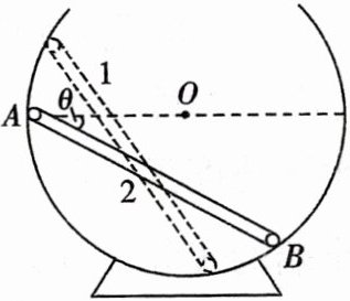 10. [杆端速度分解] 一轻杆两端分别固定质量为 $m_{A}$ 和 $m_{B}$ 的两个小球 $A$ 和 $B$(均可视为质点),将其放在一个光滑球形容器中,其从位置 1 开始下滑,如图所示,当轻杆到达位置 2 时,球 $A$ 与球形容器的球心等高,其速度大小为 $v_{1}$. 已知此时轻杆与水平方向成 $\theta = 30^{\circ}$ 角,球 $B$ 的速度大小为 $v_{2}$,则