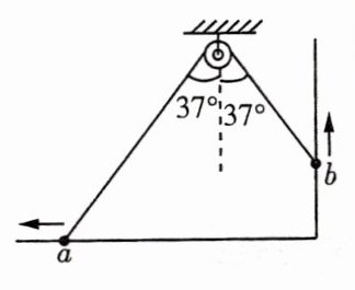 9. [绳类关联速度] 如图所示,绕过定滑轮的细线连着两个小球 $a$、$b$,小球 $a$、$b$ 分别套在水平杆和竖直杆上,某时刻连接两球的细线与竖直方向的夹角均为 $37^{\circ}$,此时 $a$、$b$ 两球的速度大小之比 $\frac{v_{a}}{v_{b}}$ 为(已知 $\sin 37^{\circ}=0.6,\cos 37^{\circ}=0.8$)