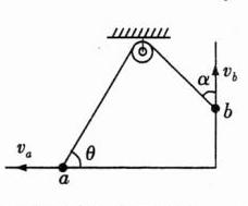 【命题拓展】 C 如图所示,小球$a$沿细线方向的分速度等于小球$b$沿细线方向的分速度,即$v_{a}\sin\theta = v_{b}\cos\alpha$,当小球$a$向左匀速运动时,$\theta$将减小,$\alpha$将增大,分析可得$v_{b}$将增大,故C正确。