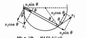 (2)A点与B点均为轻绳上的点,二者沿绳方向的分速度大小相等,即$v = v_{物}\cos\theta$。