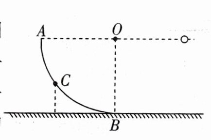 6.[落在圆弧内]如图所示,水平面上固定一半径为$5\ m$的四分之一圆弧轨道,$O$为轨道的圆心,圆弧轨道与水平面相切于$B$点. 在圆心$O$右侧同一水平线上的某点水平向左抛出一个小球,小球可视为质点,恰好垂直击中轨道上的$C$点,$C$点到水平面的高度为$2\ m$,取$g = 10\ m/s^2$,则小球抛出时的速度大小为( )