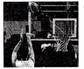 筐. 这次跳起投篮时,投球点和篮筐正好在同一水平