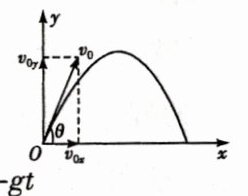 竖直方向 $v_y = v_{0y} - gt = v_0\sin\theta - gt$ $y = v_{0y}t - \frac{1}{2}gt^2 = v_0t\sin\theta - \frac{1}{2}gt^2$