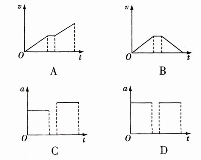 3. C 设斜坡MN段的倾角为θ,运动员在斜坡MN段做匀加速直线运动,根据牛顿第二定律有$mg\sin\theta = ma_1$,则此时加速度为$a_1 = g\sin\theta$;运动员在水平NP段做匀速直线运动,加速度$a_2 = 0$;从P点飞出后做平抛运动,加速度$a_3 = g$,C正确,D错误。设运动员在P点的速度为$v_0$,则从P点飞出后速度大小的表达式为$v=\sqrt{v_0^2 + g^2t^2}$,可知从P点飞出后速度大小与时间的图像不可能为直线,A、B错误。