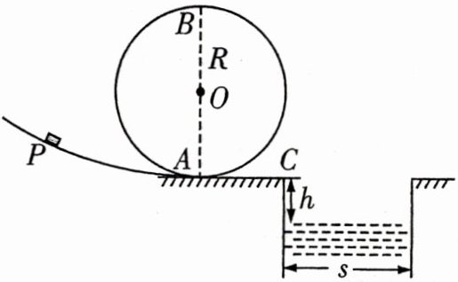 (2)过山车离开 C 点后做平抛运动,有$h=\frac{1}{2}gt^{2}$,解得运动时间为$t = \sqrt{\frac{2h}{g}} = 0.8\ s$,故最大速度为$v_{max}=\frac{s}{t}=15\ m/s$