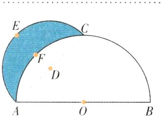 如图是古希腊著名的天才几何学家希波克拉底用于求月牙形图形面积所构造的几何图形,先以AB为直径构造半圆O,C为弧AB的中点,D为线段AC的中点,再以AC为直径构造半圆D,则由曲线AEC和曲线AFC所围成的图形为月牙形。若AB = 4,则该月牙形的面积为 ( )