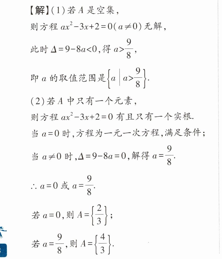 [山东临沂2024高一月考]已知集合A = {x∈R|ax² - 3x + 2 = 0,a∈R}.