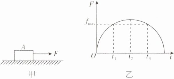 4. [四川成都石室中学2025届期中]如图甲所示,静止在水平地面上的物块$A$,从$t = 0$时刻起受到水平拉力$F$的作用,$F$与$t$的关系如图乙所示. 已知物块与水平地面间的最大静摩擦力$f_{max}$等于滑动摩擦力,下列说法正确的是 ( )